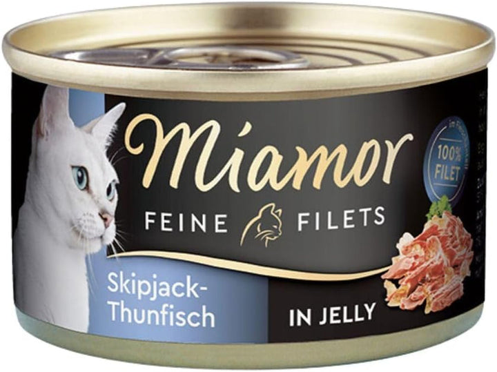 - Med skipjack-thunfish-wet for katte kombinerer bløde skipjackfileter og fin tone i en delikat gelé. Forskellige sorter, såsom kyllinger og ris, kylling og skinke eller tun, tilbyder et varieret udvalg. MIAMOR - Siden 1980'erne har jeg repræsenteret mad af høj kvalitet til katte, lavet af frisk kød, med mineraler og vitaminer af høj kvalitet. Vores rækkevidde tilbyder en række forskellige smag, tilpasset de forskellige behov for krævende katte.